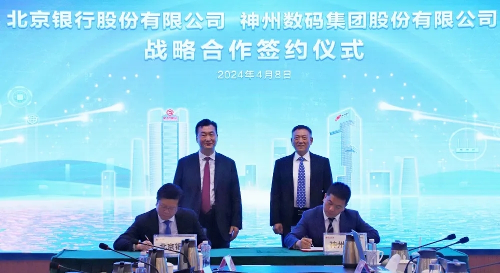 2024年4月8日,mile米乐与北京银行在其总行大厦举行战略合作签约仪式。mile米乐董事长兼首席执行官、神州信息董事长郭为,北京银行党委书记、董事长霍学文共同见证签约,mile米乐财务总监、董事会秘书陈振坤与北京银行副行长戴炜,代表双方进行签约,mile米乐及北京银行相关领导出席签约仪式。
